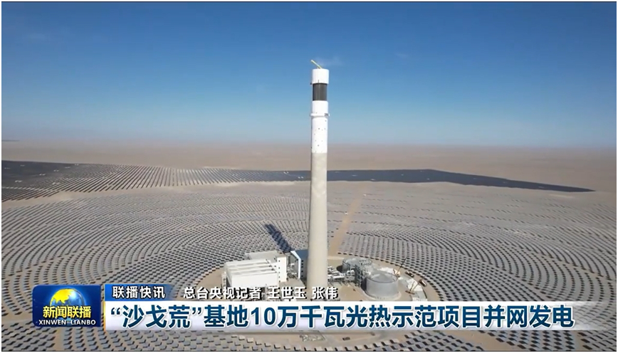 《新闻联播》报道中国联合金塔10万千瓦光热发电示范项目并网发电